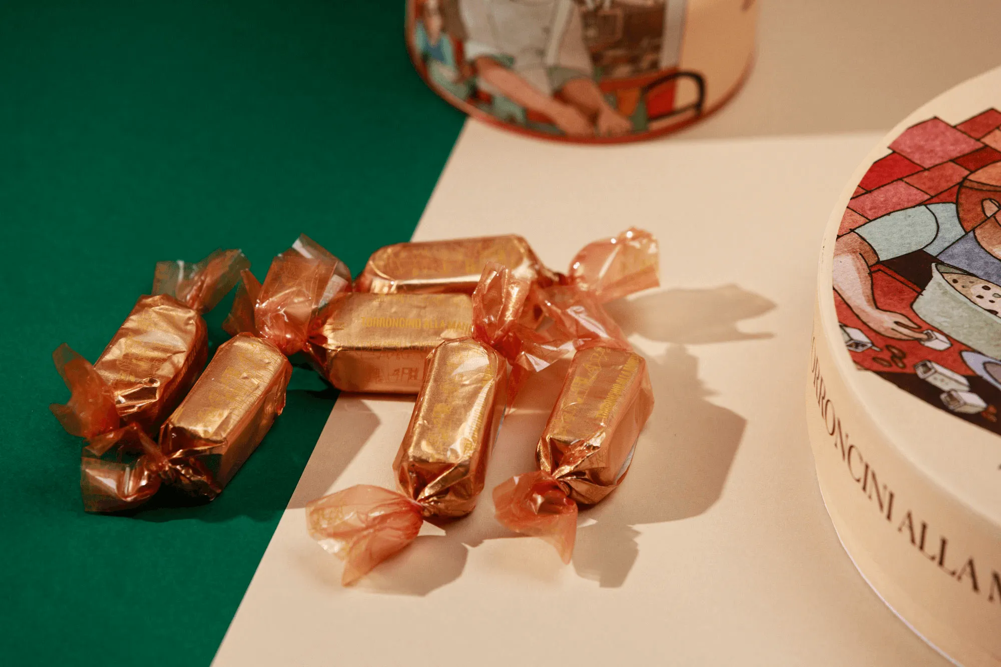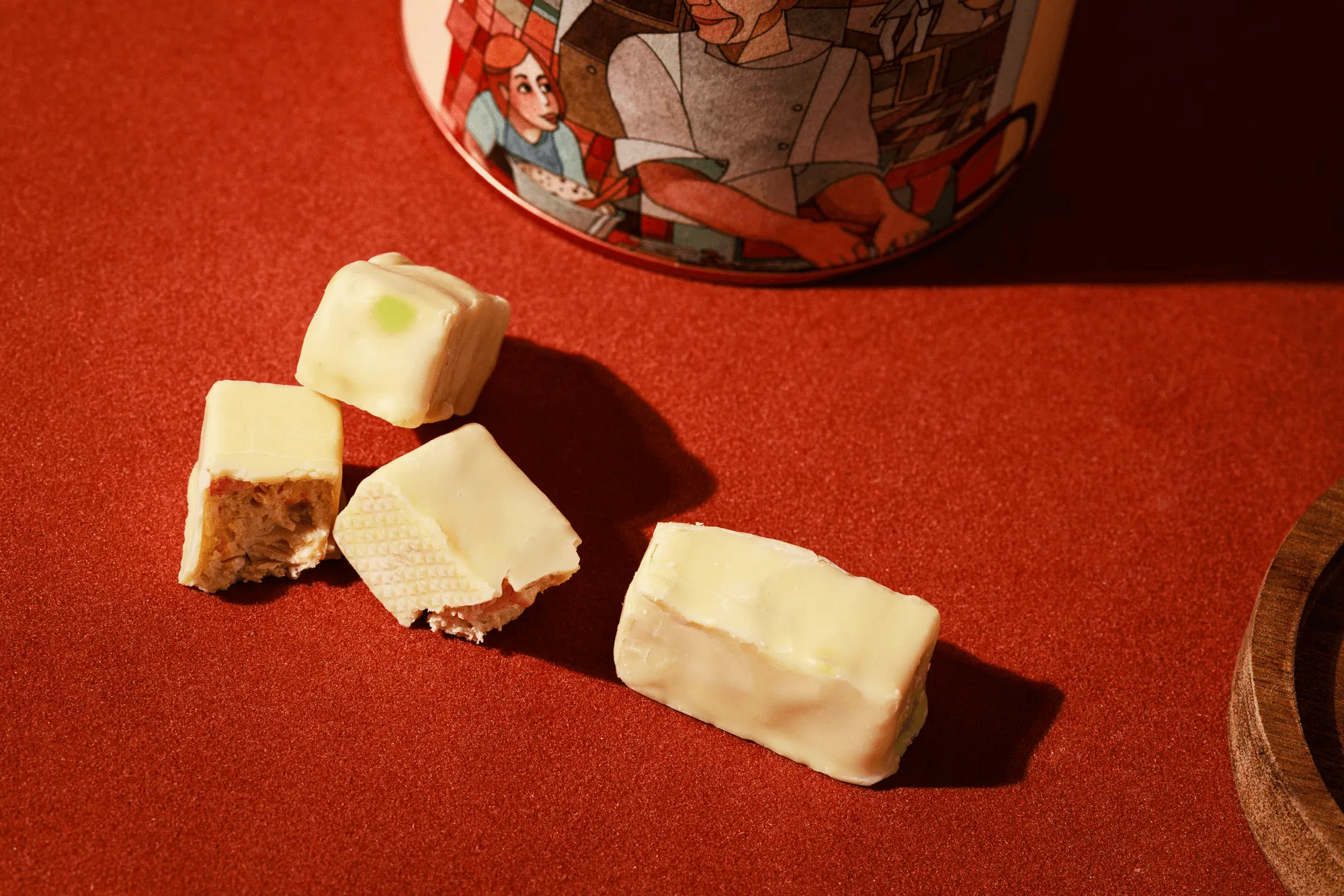 Weiche sizilianische Nougatwürfel mit Manna, Mandeln und Pistazien. Traditionelle Handwerkskunst. Vedi di più: Panettone & Kunsthandwerk 🍬🌟