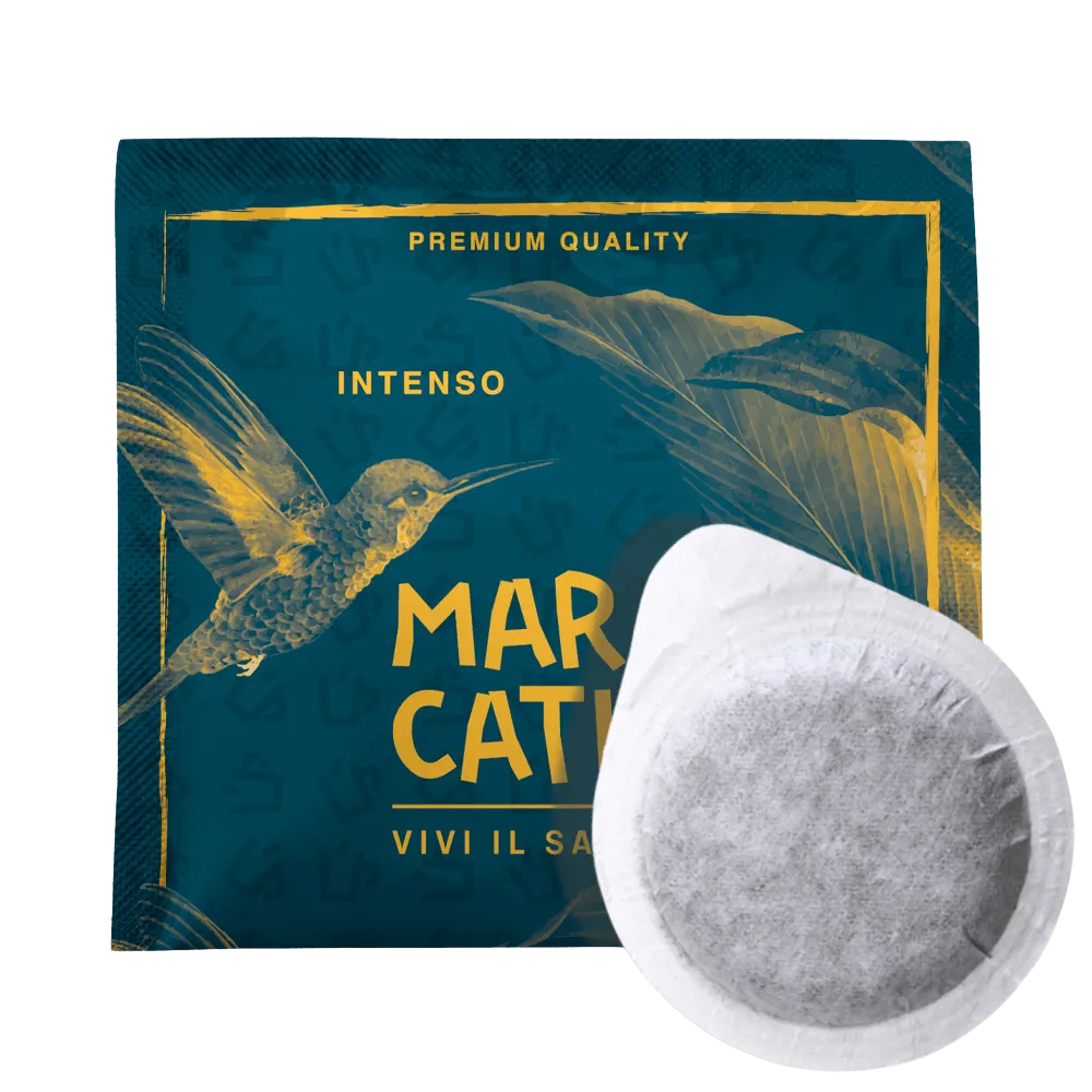 50 Maracatú Coffee Pods INTENSO ESE Compostable blend represent the perfect choice for those who want a strong coffee full of personality. This exceptional blend comes from a careful selection of fine beans, expertly roasted to release the deepest essence of coffee and create moments of pure energy.