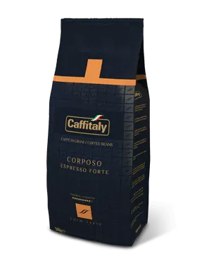Kawa ziarnista Caffitaly Corposo Espresso Forte 1 kg to intensywna mieszanka azjatyckiej Robusty i aromatycznej Arabiki. Efektem jest mocne espresso o głębokim body i nutach kakao.