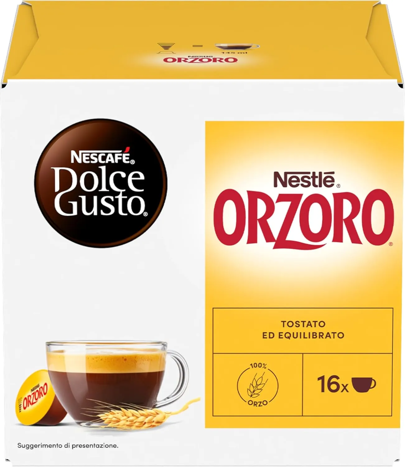 16 Capsule Originali Nescafè Dolce Gusto ORZORO – la classica bevanda all’orzo dal gusto delicato e naturalmente privo di caffeina ☕. Una tazza morbida e avvolgente, perfetta in ogni momento della giornata, ideale anche per chi preferisce un’alternativa al caffè. Schiuma cremosa e gusto equilibrato per una pausa leggera ma appagante 🌾.