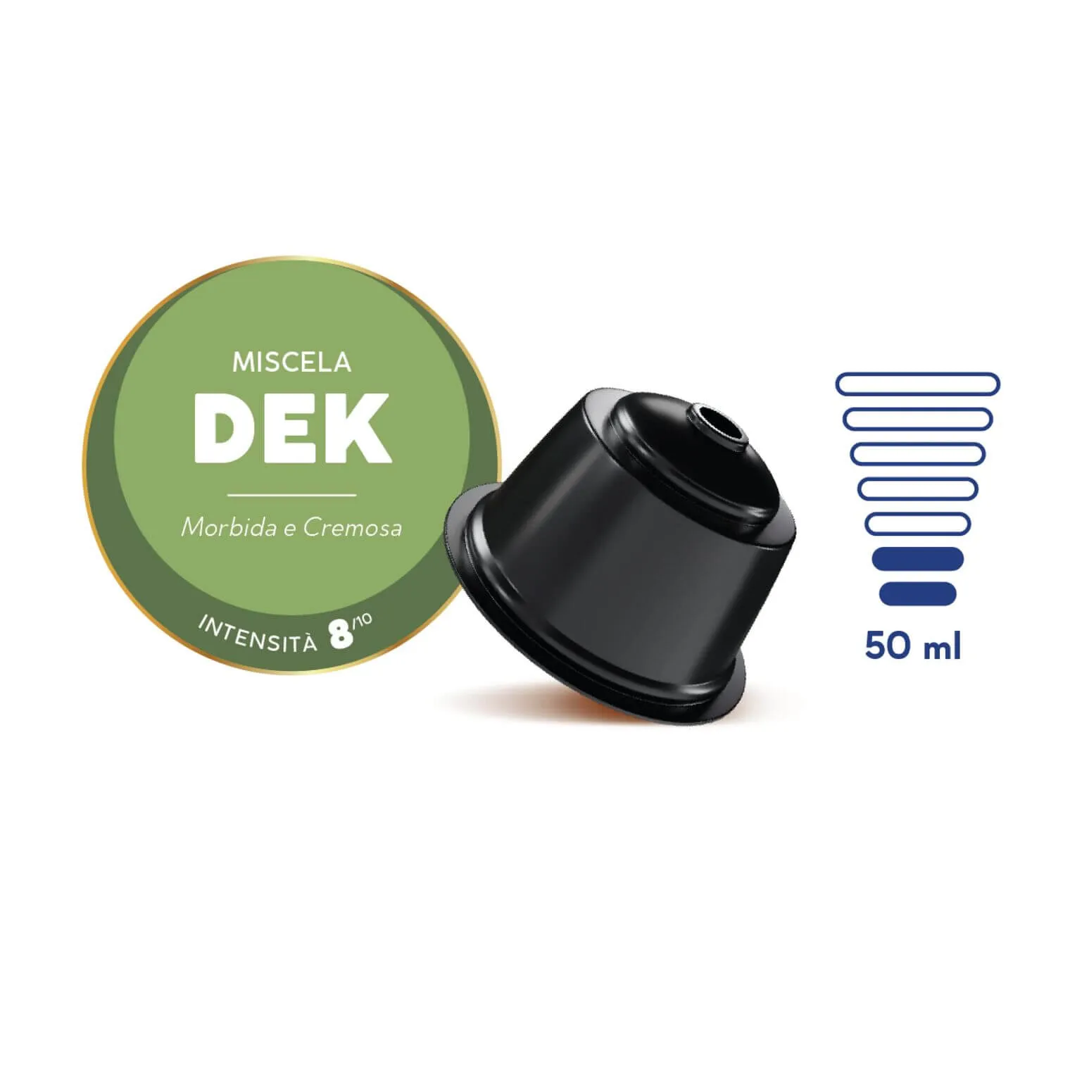 Queste capsule DECAFFEINATE sono specificamente progettate per l'uso con macchine da caffè Nescafé Dolce Gusto. Perfette per il piacere serale, persone sensibili o chiunque voglia limitare l'assunzione di caffeina continuando a sperimentare l'autentica qualità dell'espresso italiano. Ideali per qualsiasi momento della giornata senza preoccupazioni per il sonno.