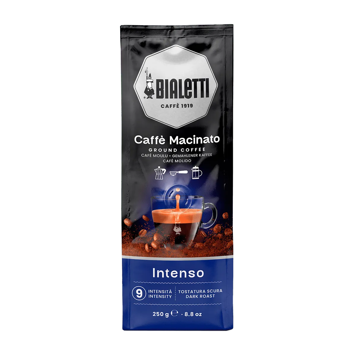 Caffè macinato Bialetti Perfetto Moka Intenso 250 g ☕ – miscela di Arabica e Robusta, tostatura medio-scura, intensità 9/10.