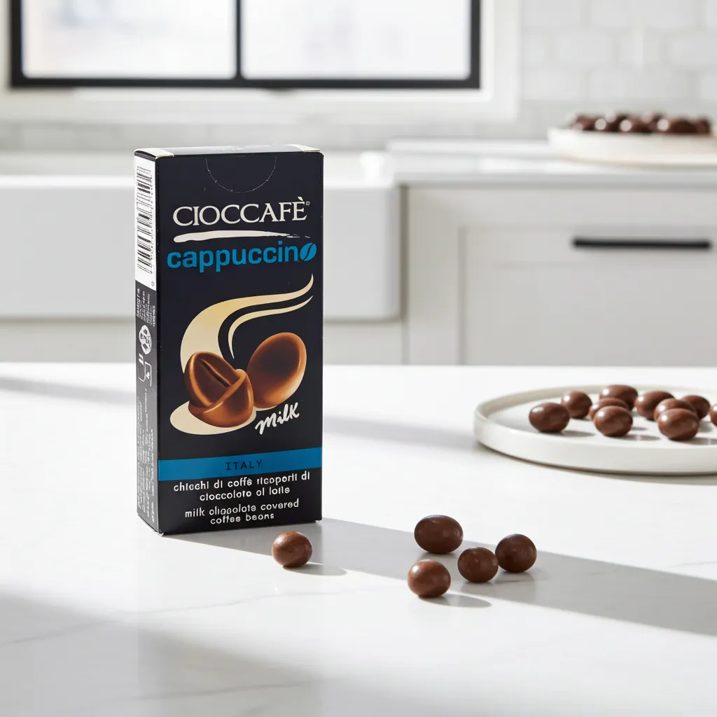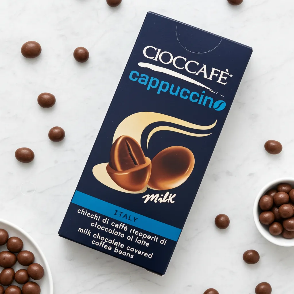 Cioccafè Cappuccino Milk – chicchi di caffè tostati e avvolti in morbido cioccolato al latte.