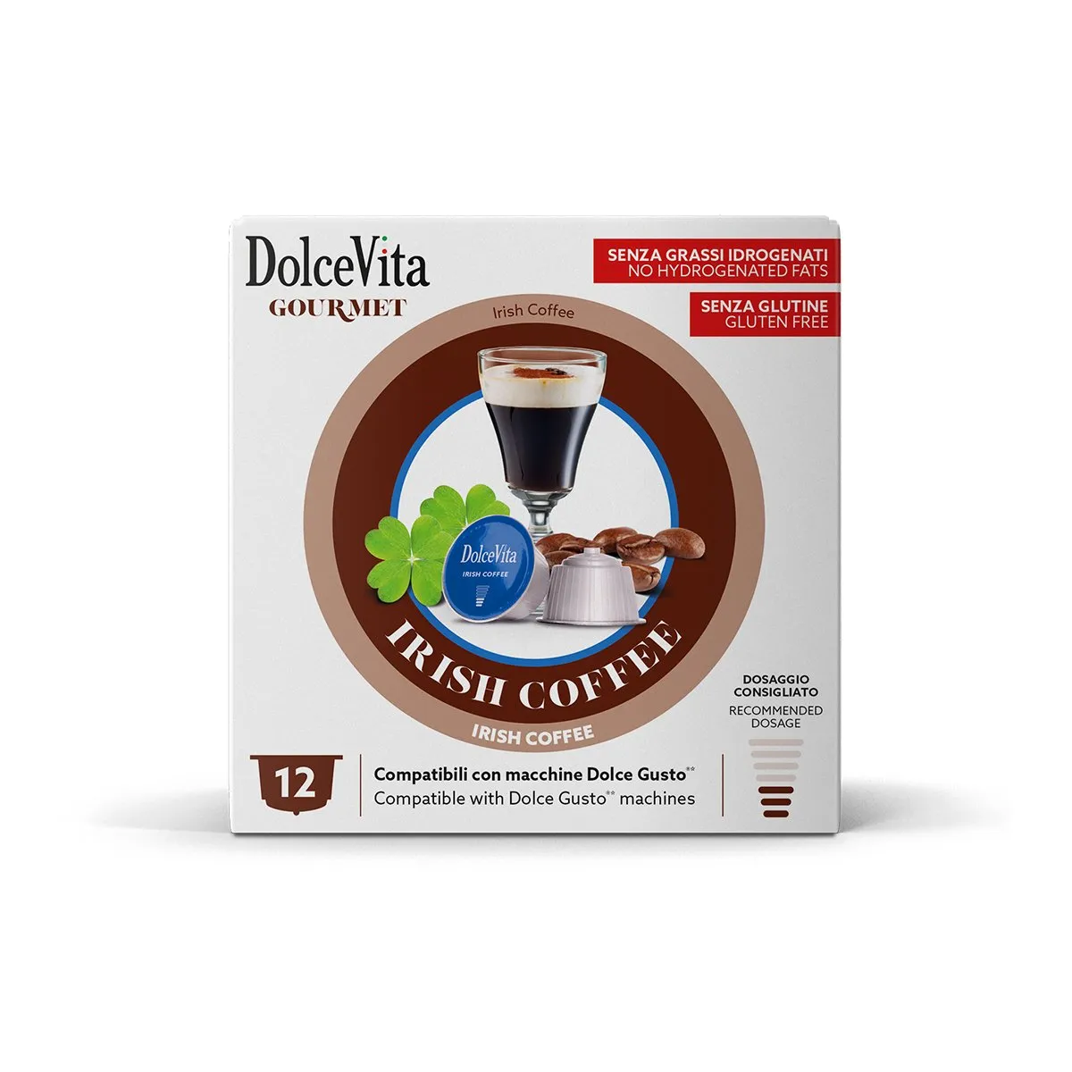 12 capsule Irish Coffee Dolce Vita - bevanda solubile al sapore di Irish Coffee ☕. Tutto il sapore della tipica bevanda irlandese con gusto autentico e carattere 🍀.